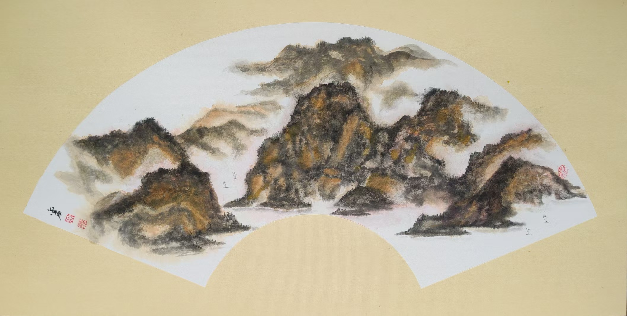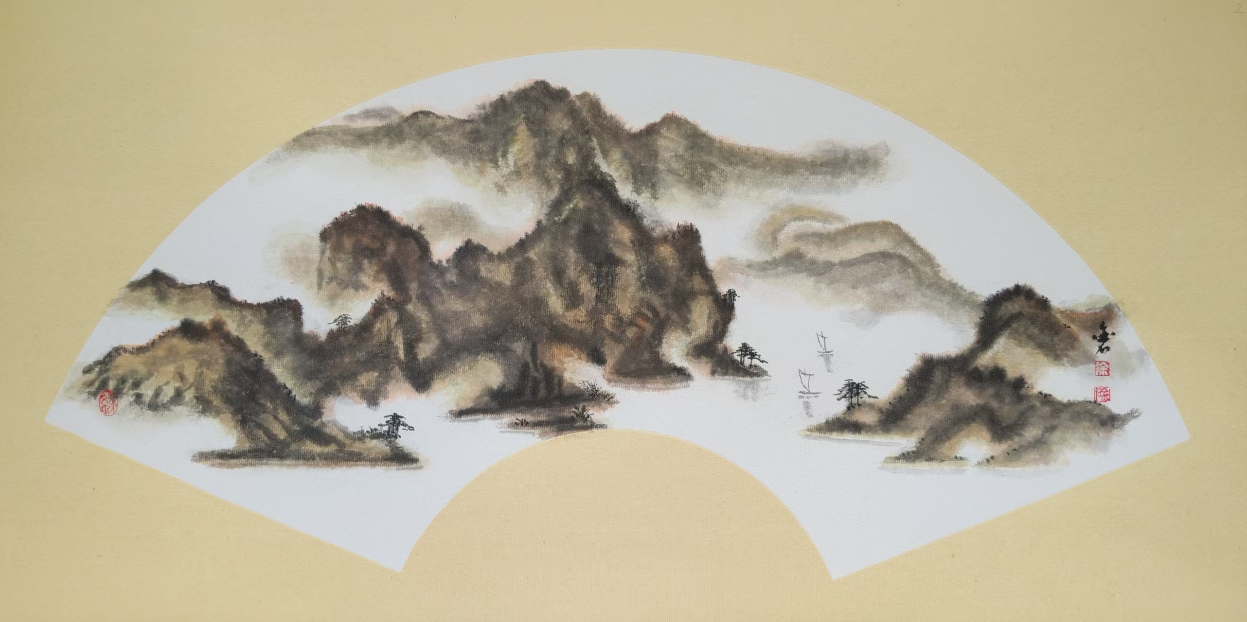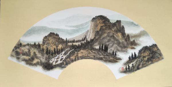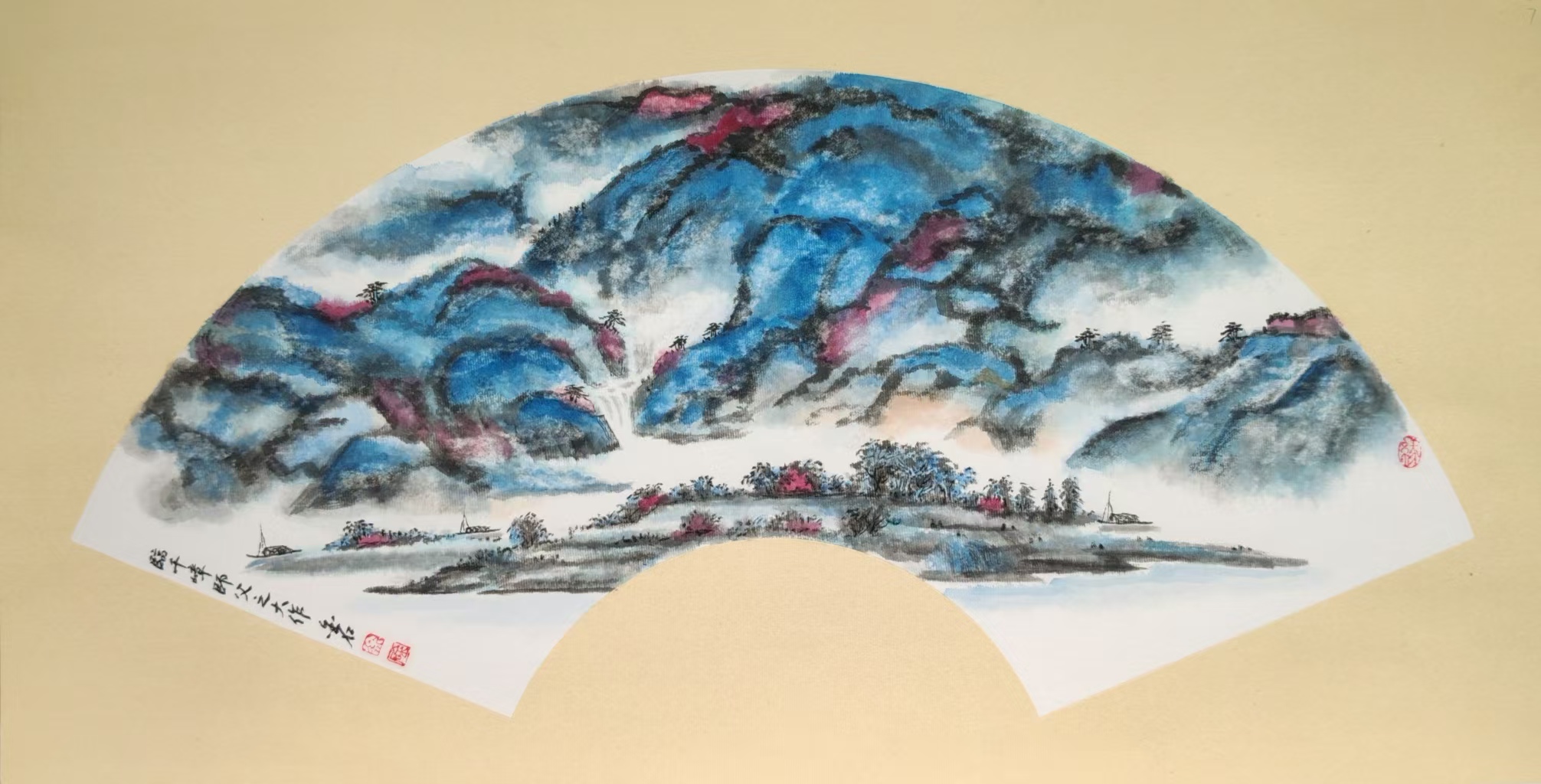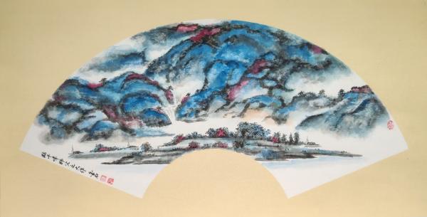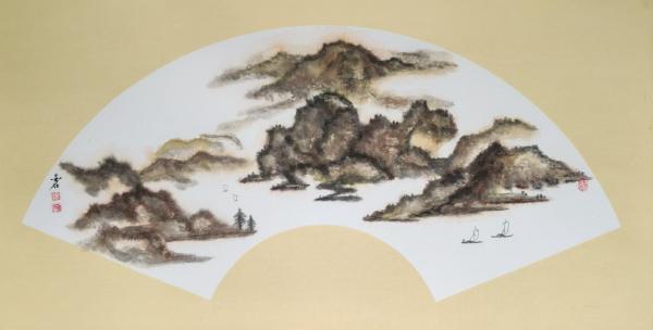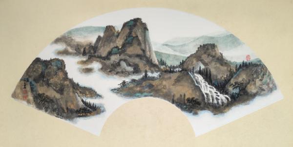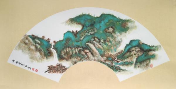彩墨扇面