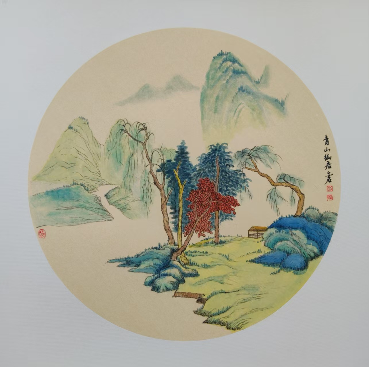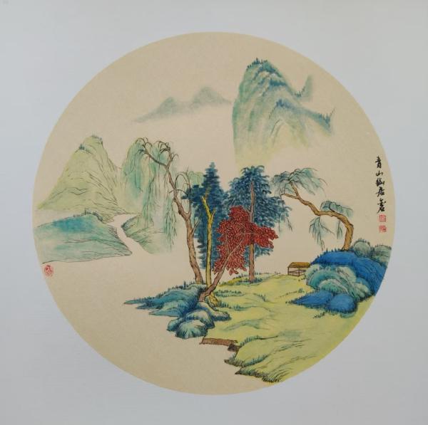 青绿山水以矿物质的石青、石绿为主彩,色泽璀璨,历久弥新。画风堂皇华贵,既状山川之雄奇,又展理想之境,开创了中国画色彩美学的重要典范。
